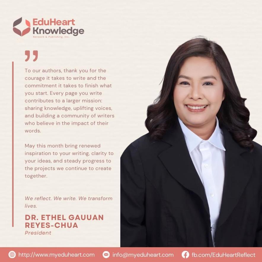 Sharing this month’s President’s Note from Dr. Ethel Gauan Reyes-Chua — a message of perseverance, purpose, and steady progress for our authors and partners.
